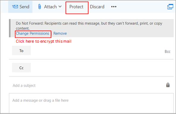 В Outlook.com в письме выберите Защита. По умолчанию защита Не пересылать. Чтобы сделать это шифрованием, выберите команду Изменить разрешения > Шифрование.