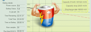 Мониторинг производительности аккумуляторных систем, используемых для питания портативных компьютеров и источников бесперебойного питания, подключенных к серверам. Уровень заряда батареи отображается на графике в реальном времени, вместе с экстраполированной линией тренда и линией сравнения трендов.