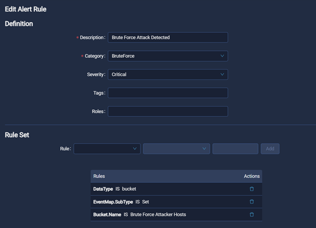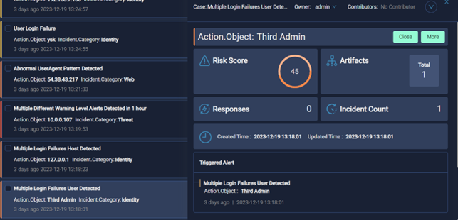 Наприклад, якщо подій невдалого логіну більше 100 за останні 10 хвилин (360 секунд), то буде згенерований інцидент і всі логіни облікових записів будуть додані до спеціального списку.