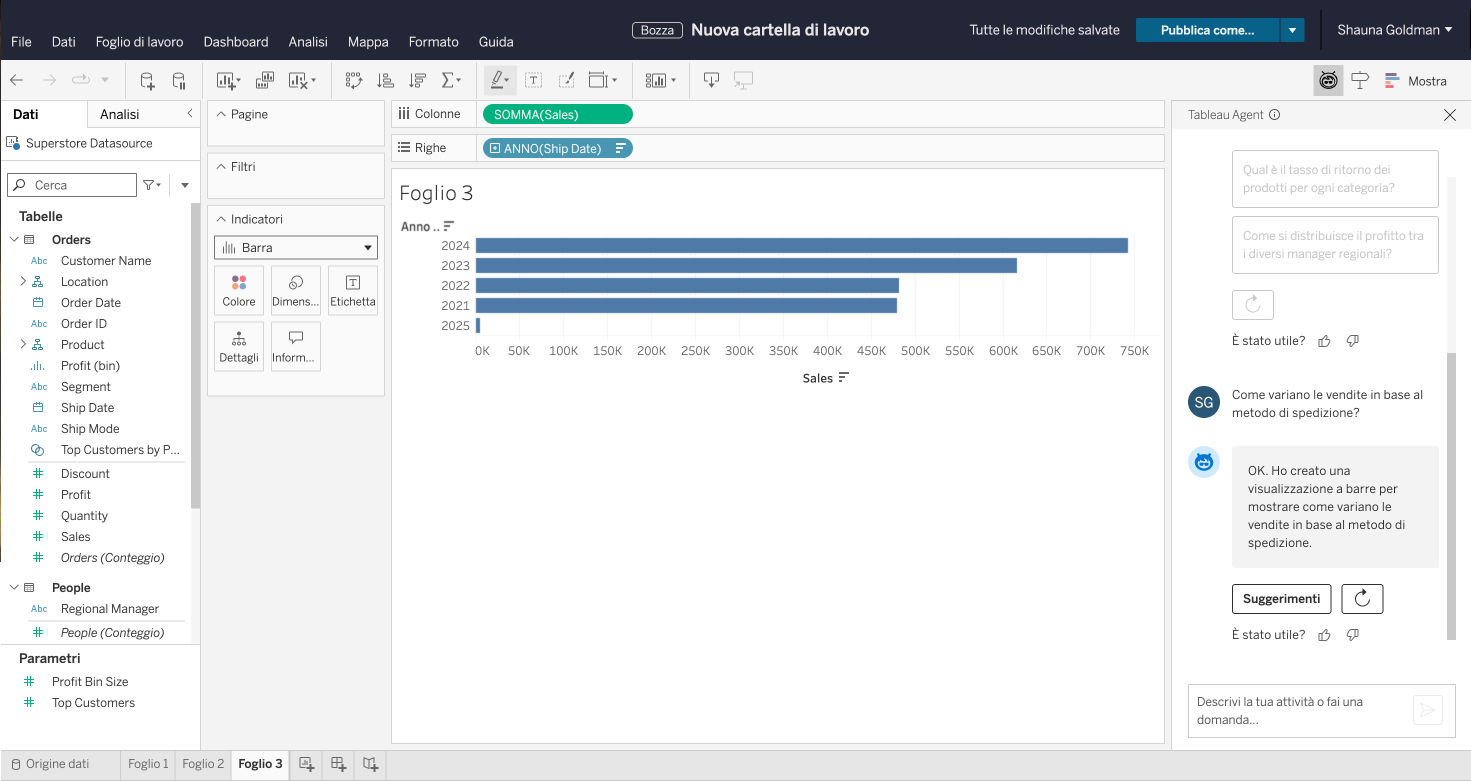 Tableau розширює функціонал Tableau Agent, додаючи можливість аналізу даних за допомогою розмовного AI різними мовами, зокрема: французькою, італійською, німецькою, іспанською, японською та португальською.